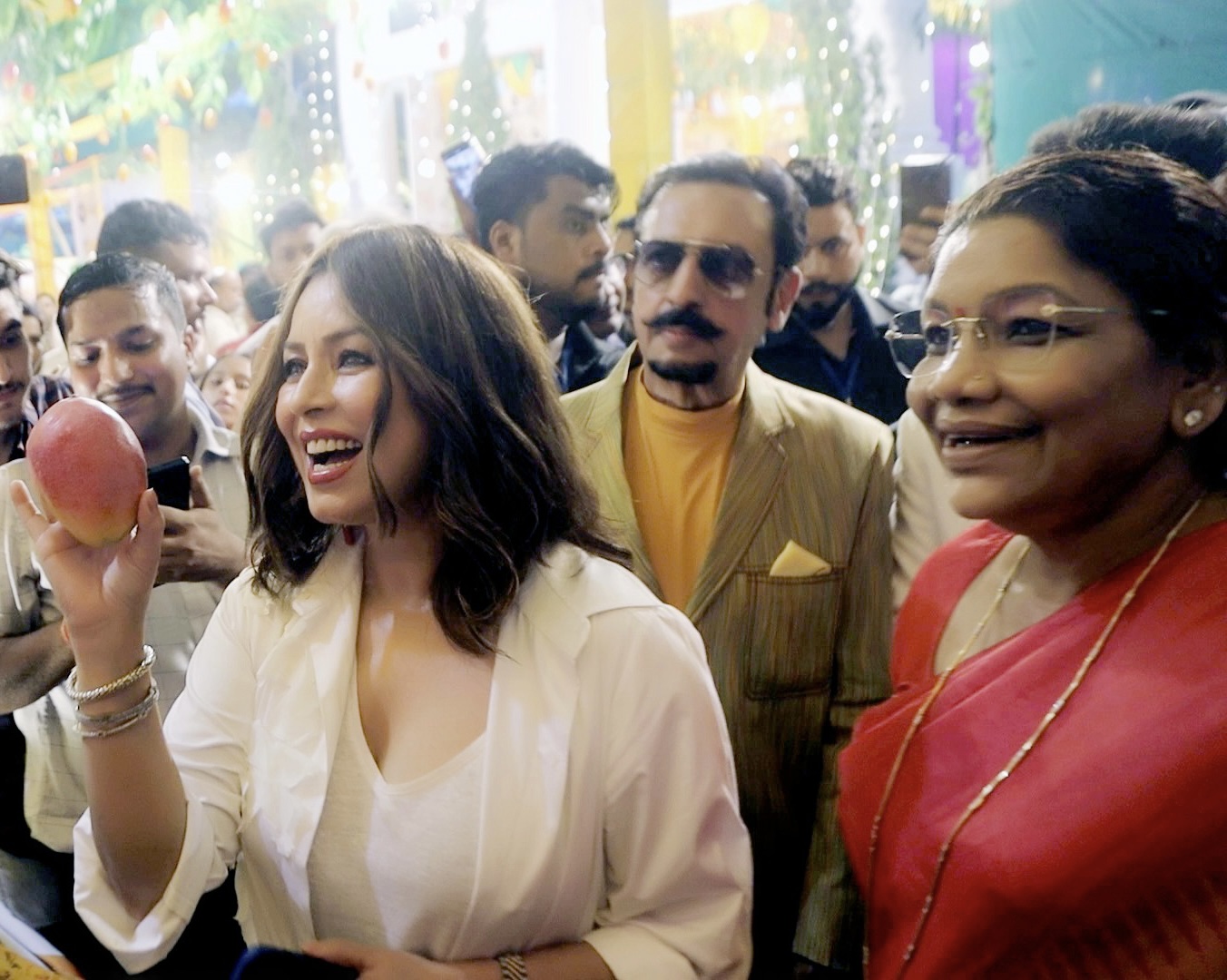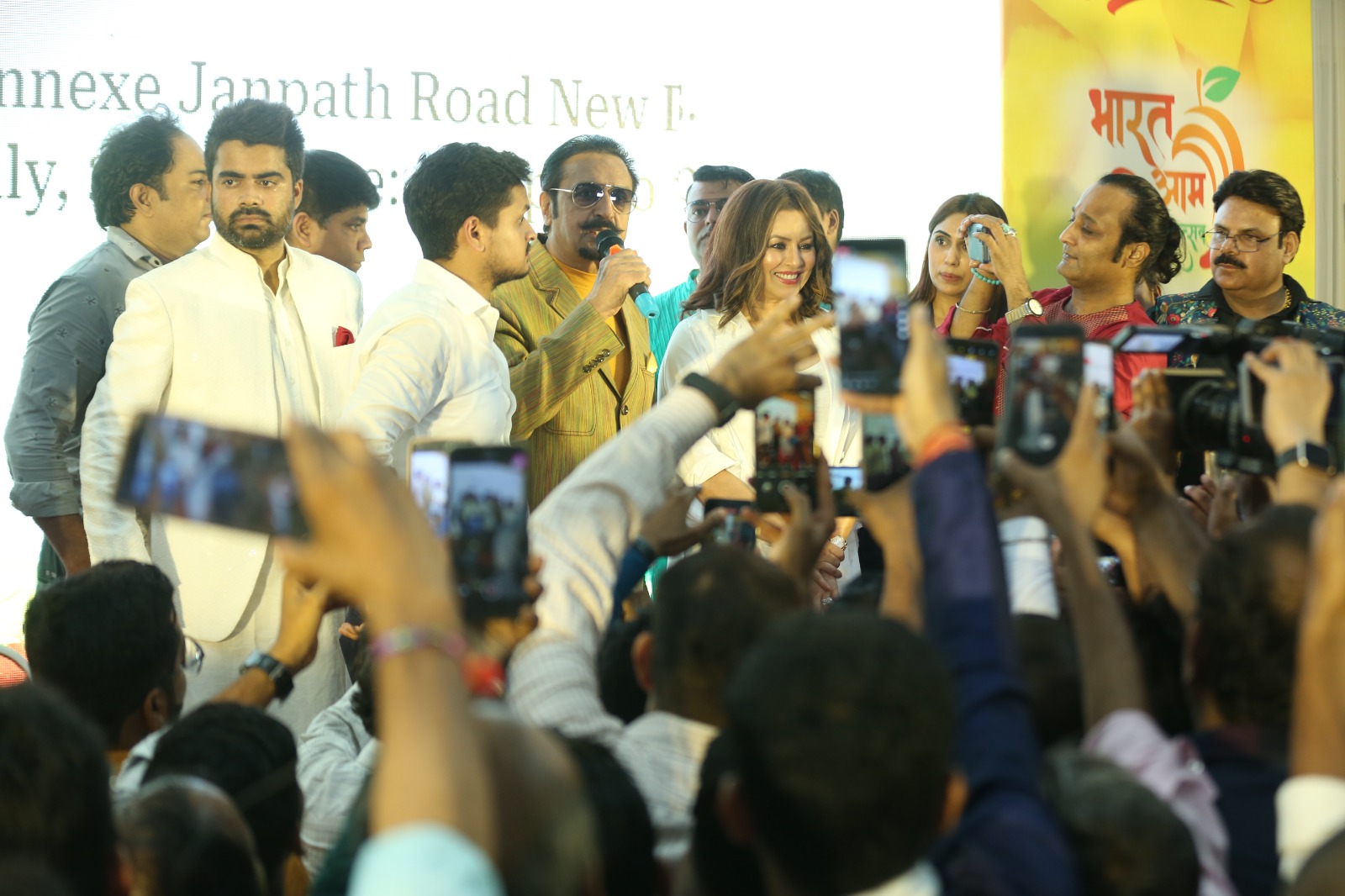 इसके साथ ही उन्होंने विभिन्न प्रजातियों के आम के स्वाद का लुत्फ उठाया। महोत्सव में पहुंचे फिल्मी सितारों ने खूब जलवे बिखेरे। फिल्म स्टार महिमा चौधरी ने हाथ हिलाकर लोगों का दिल जीत लिया वहीं गुलशन ग्रोवर के डायलॉग ने जमकर तालियां बटोरी। अभिनेत्री प्रीति झिंगियानी से मिलकर महोत्सव में मौजूद युवक युवतियों की भींड फोटो सेशन के लिए उमड़ पड़ी। मशहूर फ़िल्म अभिनेता राजपाल यादव ने अपने हसमुख अंदाज़ से लोगो का दिल जीत लिया । वही रजा मुराद, शहबाज खान, बिंदु दारा सिंह , प्रवीन डबास जैसे अभिनेताओं ने युवाओं के साथ बच्चों और बुजुर्गों ने हाथ मिलाकर फोटो खिंचवाई। कार्यक्रम में पहुंचीं मशहूर कवियत्री शबीना अदीब,कविता तिवारी ने मंच से कविताओं को पेशकर श्रोताओं को मंत्रमुग्ध कर दिया। इस दौरान फिल्मी सितारों ने भी आम के साथ ही आम से बने मैंगो शेक और आइसक्रीम का लुत्फ उठाया। महोत्सव में पहुंचे केंद्रीय जनजातीय मामलों के मंत्री अर्जुन मुंडा , केंद्रीय मत्स्य पालन, पशुपालन और डेयरी मंत्री परषोत्तम रूपाला , केंद्रीय भारी उद्योग मंत्री महेंद्र नाथ पांडे , केंद्रीय रक्षा राज्य मंत्री अजय भट्ट, केंद्रीय स्वास्थ राज्य मंत्री एस० पी० सिंह बघेल , केंद्रीय उपभोक्ता मामले, खाद्य और सार्वजनिक वितरण राज्य मंत्री अश्विनी चौबे , केन्द्रीय ग्रामीण विकास राज्यमंत्री, साध्वी निरंजन ज्योति , केंद्रीय संचार राज्य मंत्री देवूसिंह चौहान ,केंद्रीय जनजातीय मामलों की राज्य मंत्री रेणुका सिंह सरुता , केंद्रीय महिला बाल विकास और आयुष राज्य मंत्री डॉ. महेंद्र भाई मुंजापरा ,केंद्रीय सामाजिक न्याय और अधिकारिता मंत्रालय में राज्य मंत्री ए नारायणस्वामी ,केंद्रीय इस्पात राज्यमंत्री फग्गन सिंह कुलस्ते ,केंद्रीय सामाजिक न्याय एवं अधिकारिता राज्यमंत्री रामदास बंडु आठवले, केंद्रीय पेट्रोलियम और प्राकृतिक गैस राज्यमंत्री रामेश्वर तेली , केंद्रीय बंदरगाह, जहाजरानी और जलमार्ग राज्य मंत्री शांतनु ठाकुर, अल्पसंख्यक मामलों के केंद्रीय राज्यमंत्री जॉन बारला ने नेशनल मीडिया क्लब के चेयरमैन रमेश अवस्थी और अध्यक्ष सचिन अवस्थी को सफल भारत आम महोत्सव आयोजन करने की बधाई दी।